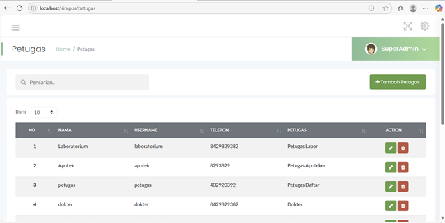 Sistem Puskesmas adalah aplikasi berbasis web yang dirancang untuk mendukung proses pelayanan kesehatan di tingkat Pusat Kesehatan Masyarakat (Puskesmas) secara digital dan terintegrasi. Sistem ini bertujuan untuk meningkatkan efisiensi, akurasi, dan kecepatan dalam pengelolaan data pasien, pelayanan medis, stok obat, serta pelaporan ke dinas kesehatan.Dengan sistem ini, proses manual seperti pencatatan data pasien, rekam medis, hingga laporan bulanan dapat dilakukan secara otomatis dan terdokumentasi dengan baik.